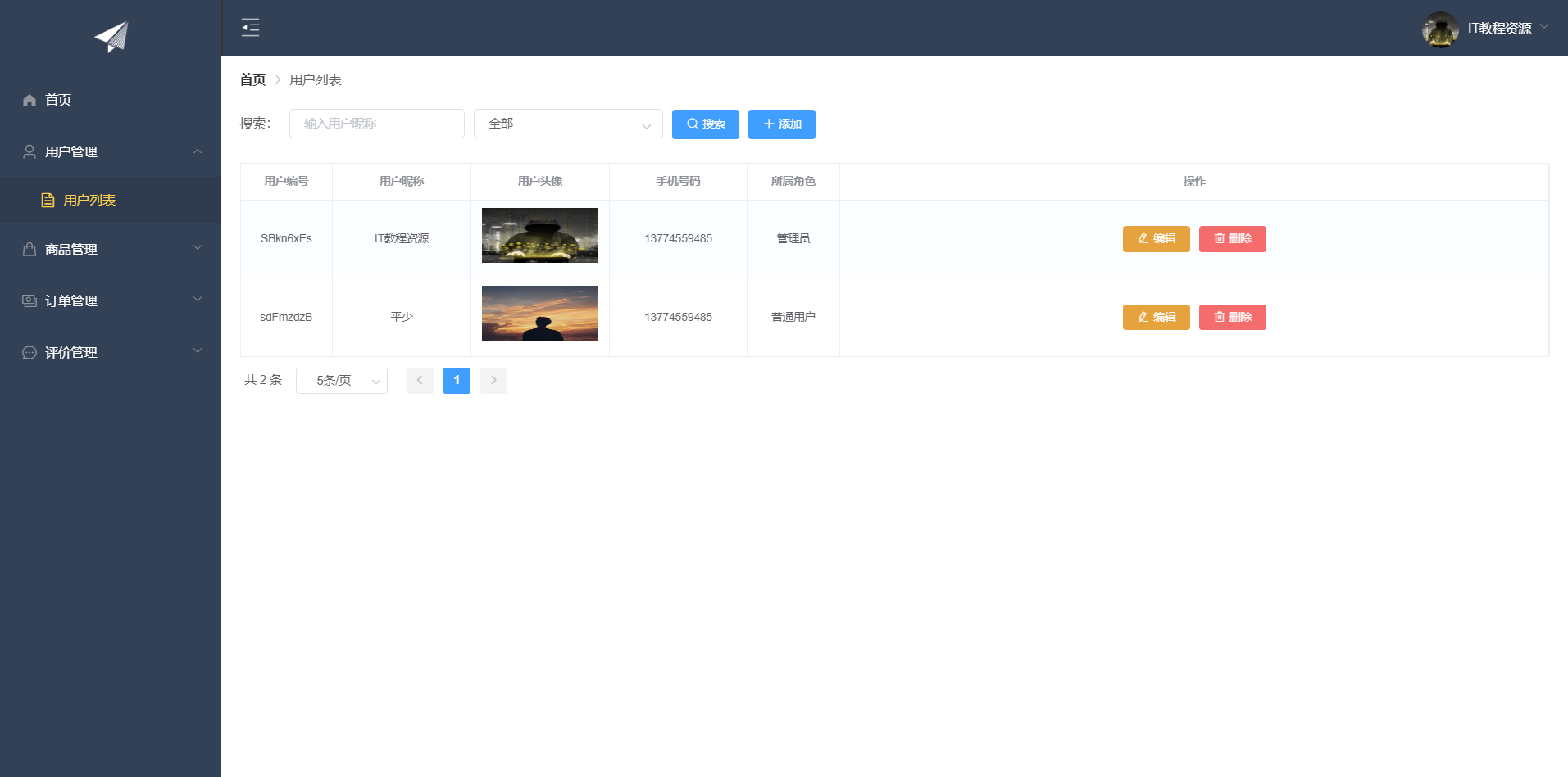 登录、首页、用户管理、商品管理(商品列表、分类列表)、订单列表、评论管理、退出登录等等功能