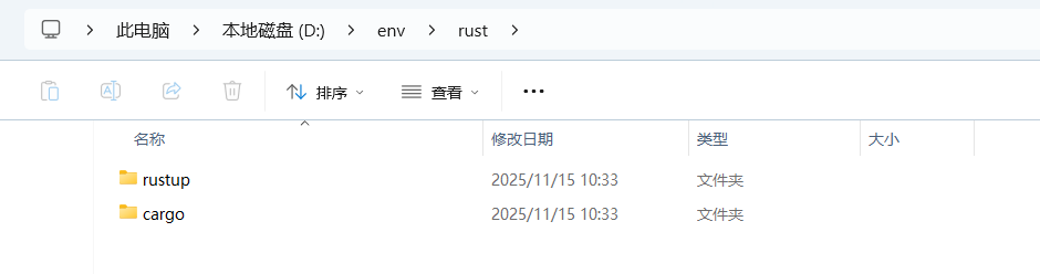 新建系统变量 RUSTUP_HOME = D:\env\rust\rustup