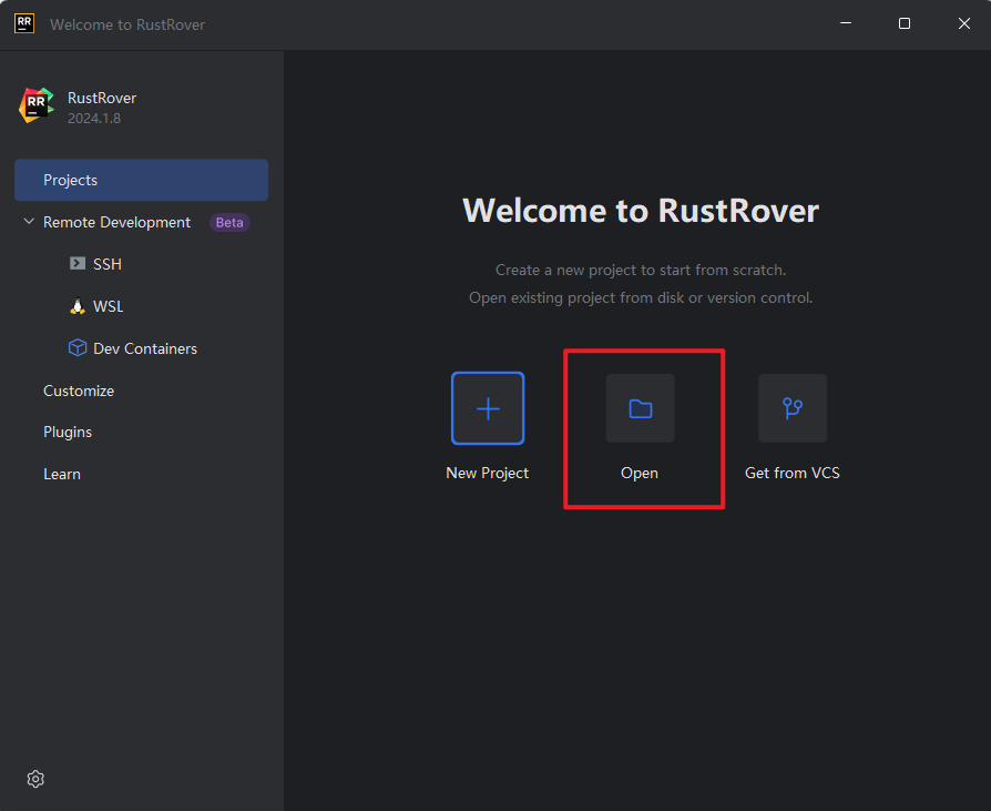 笔者使用 RustRover 开发工具,官网下载 RustRover 并安装