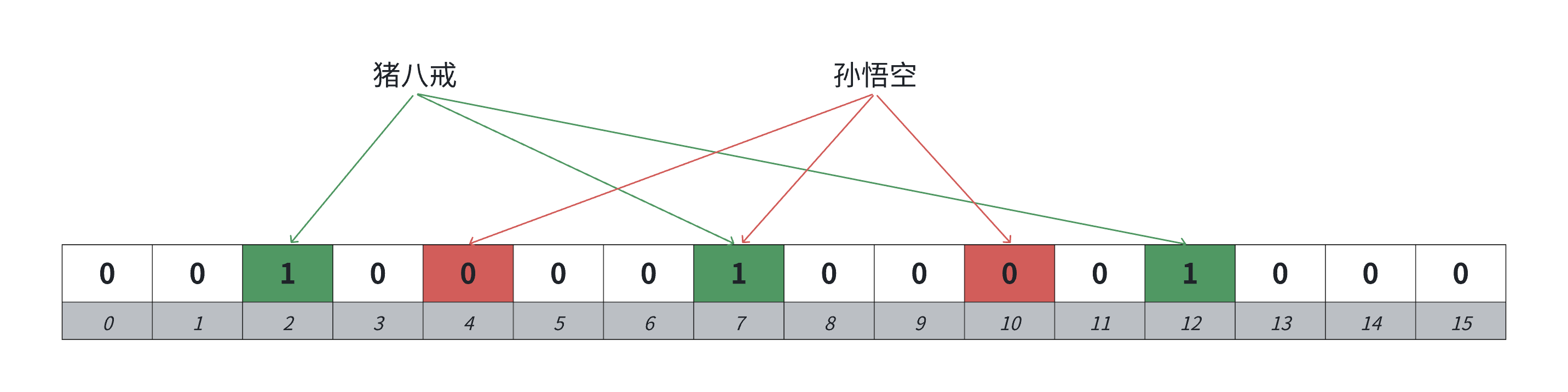 (1)布隆过滤器默认是不支持删除 的,因为比如"猪八戒"和"孙悟空"都映射在布隆过滤器中,他们映射的位有一个位是共同映射的 (冲突的),如果我们把孙悟空删掉,那么再去查找"猪八戒"会查找不到,因为那么"猪八戒"间接被删掉了。