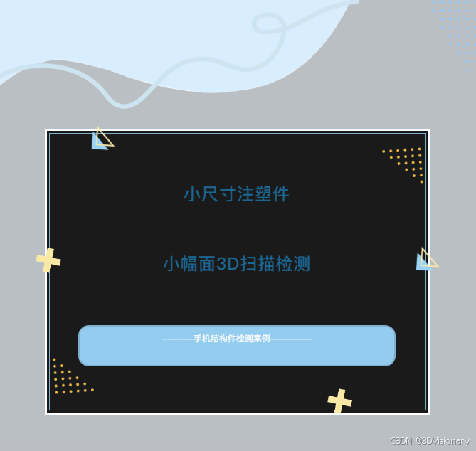 另外,小幅面蓝光三维扫描,配备200×150mm和100×75 mm小幅面工业相机,确保聚焦细小零件表面,获取精细的曲面轮廓细节特征。这些特性使小幅面蓝光三维扫描成为消费电子制造中尺寸检测、形位公差分析的关键标准。
