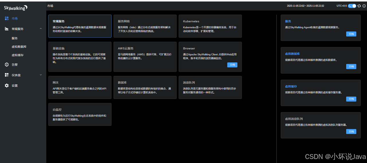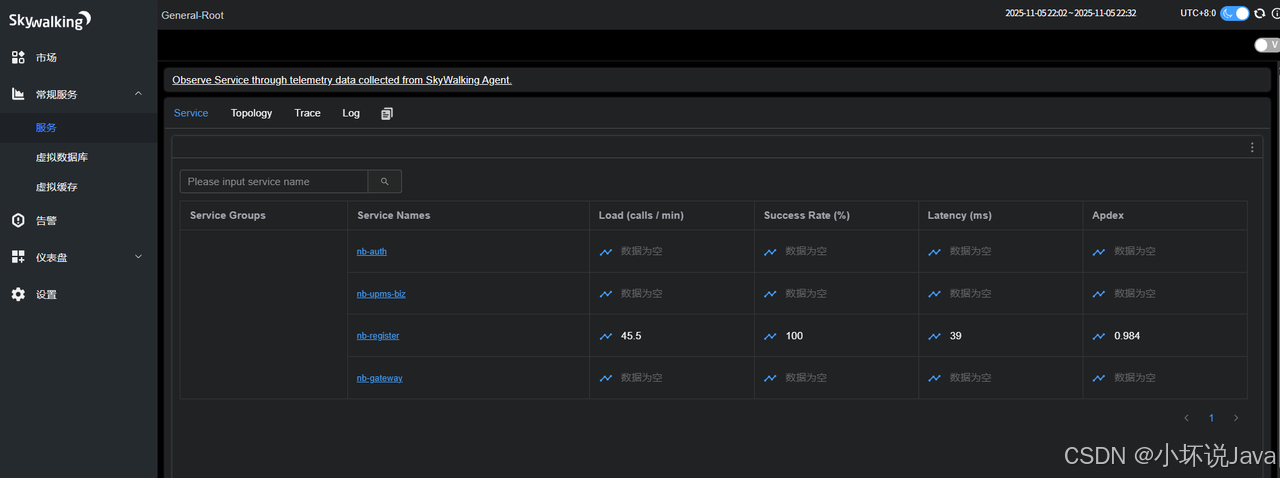- 访问SkyWalking UI(默认http://localhost:8080)