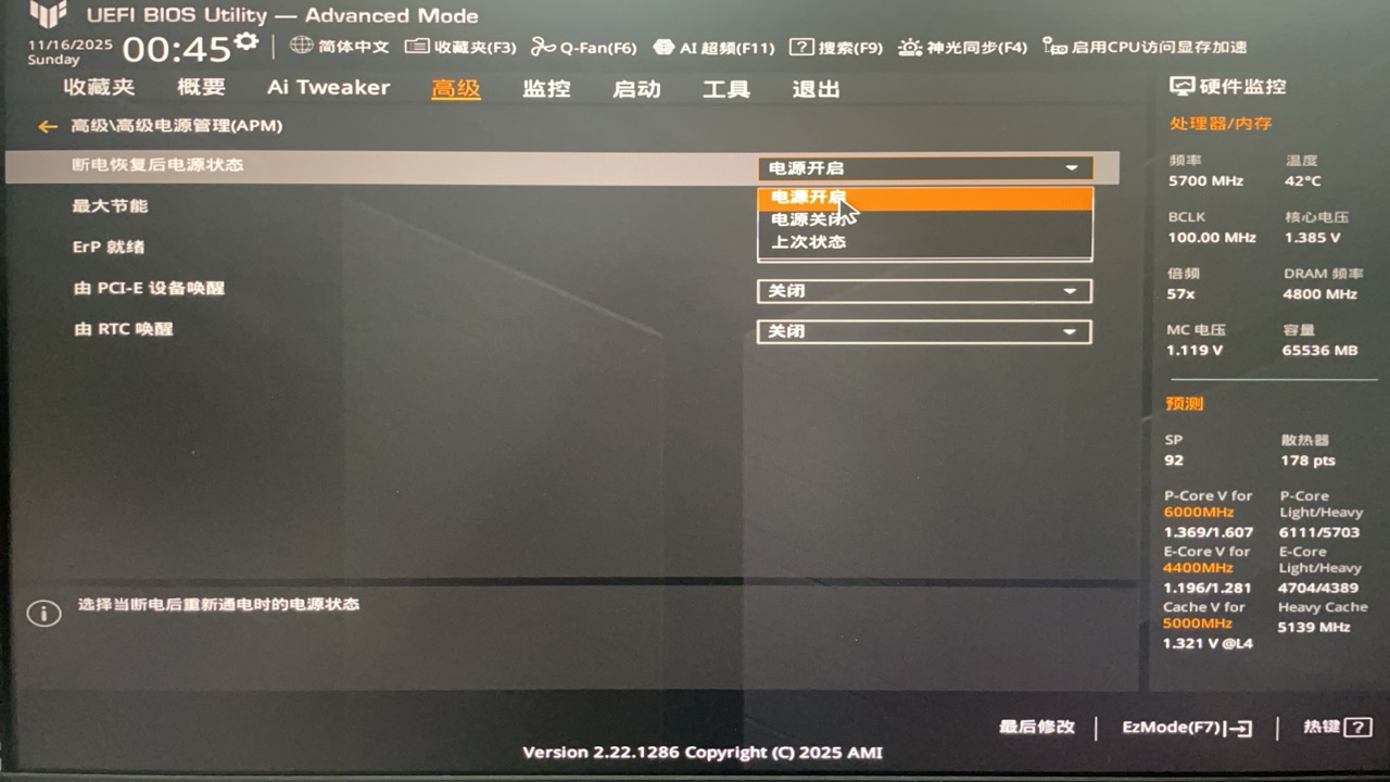 然而,默认情况下部分华硕主板在市电恢复后会保持"断电前状态"或保持关闭状态,导致: