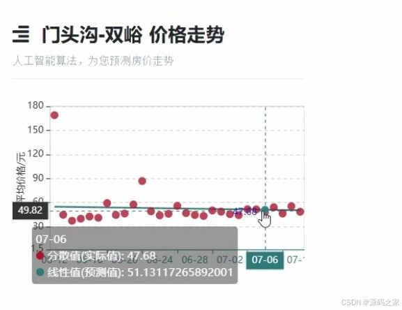 regression_data.py),通过输入相关特征(如面积、位置等)来预测房价。 - 核心作用:为用户提供房价走势的参考,帮助用户评估购房成本。