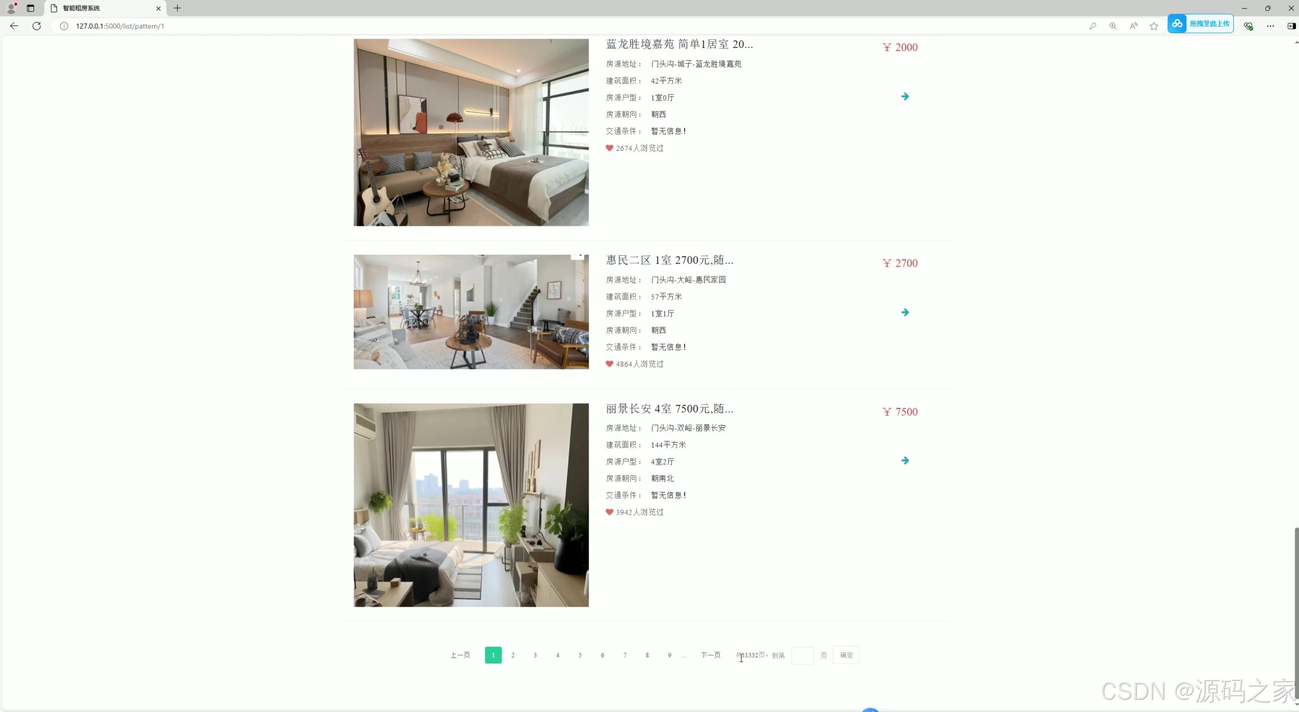 - 功能:展示所有房源的列表,用户可以浏览所有房源信息。