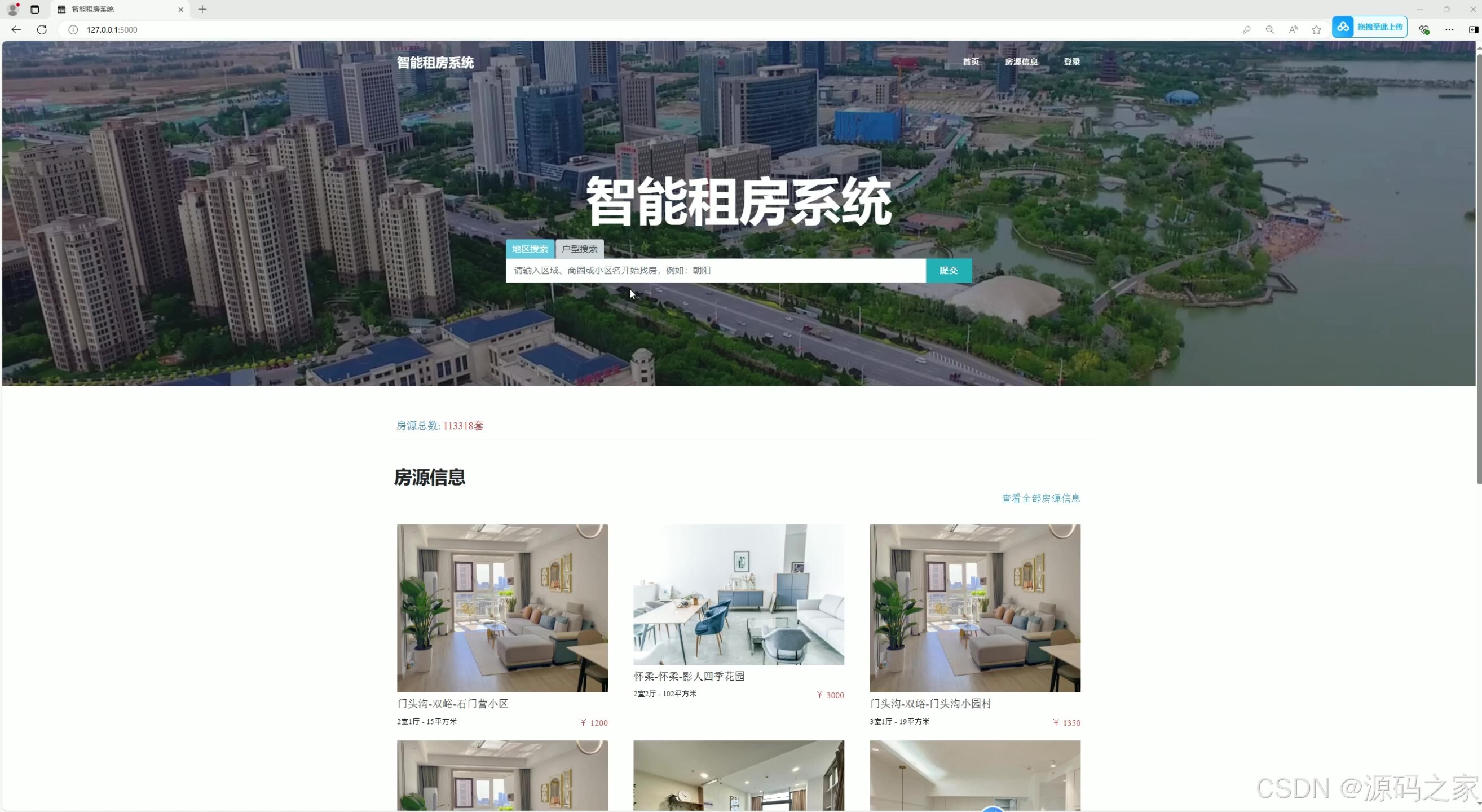 (1)系统首页---搜索功能、房源信息展示