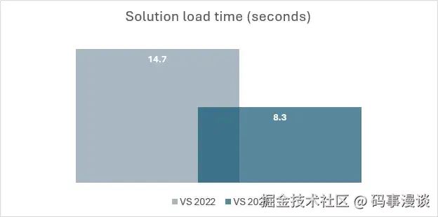 首先是解决方案加载速度的革命性提升。微软测试数据显示,加载大型.NET解决方案时,VS2026交互就绪时间比VS2022快很多。