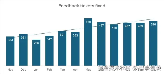 这张图表展示Visual Studio团队过去12个月修复的反馈工单数量,充分体现微软对开发者体验的重视。有这样的支持,还有什么理由拒绝升级呢?