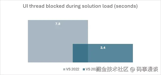但速度快只是一方面,更重要的是UI响应性提升。咱们都经历过打开大型解决方案时IDE界面"卡死"的尴尬。VS2026彻底解决这个痛点,把UI无响应时间减少一半以上!