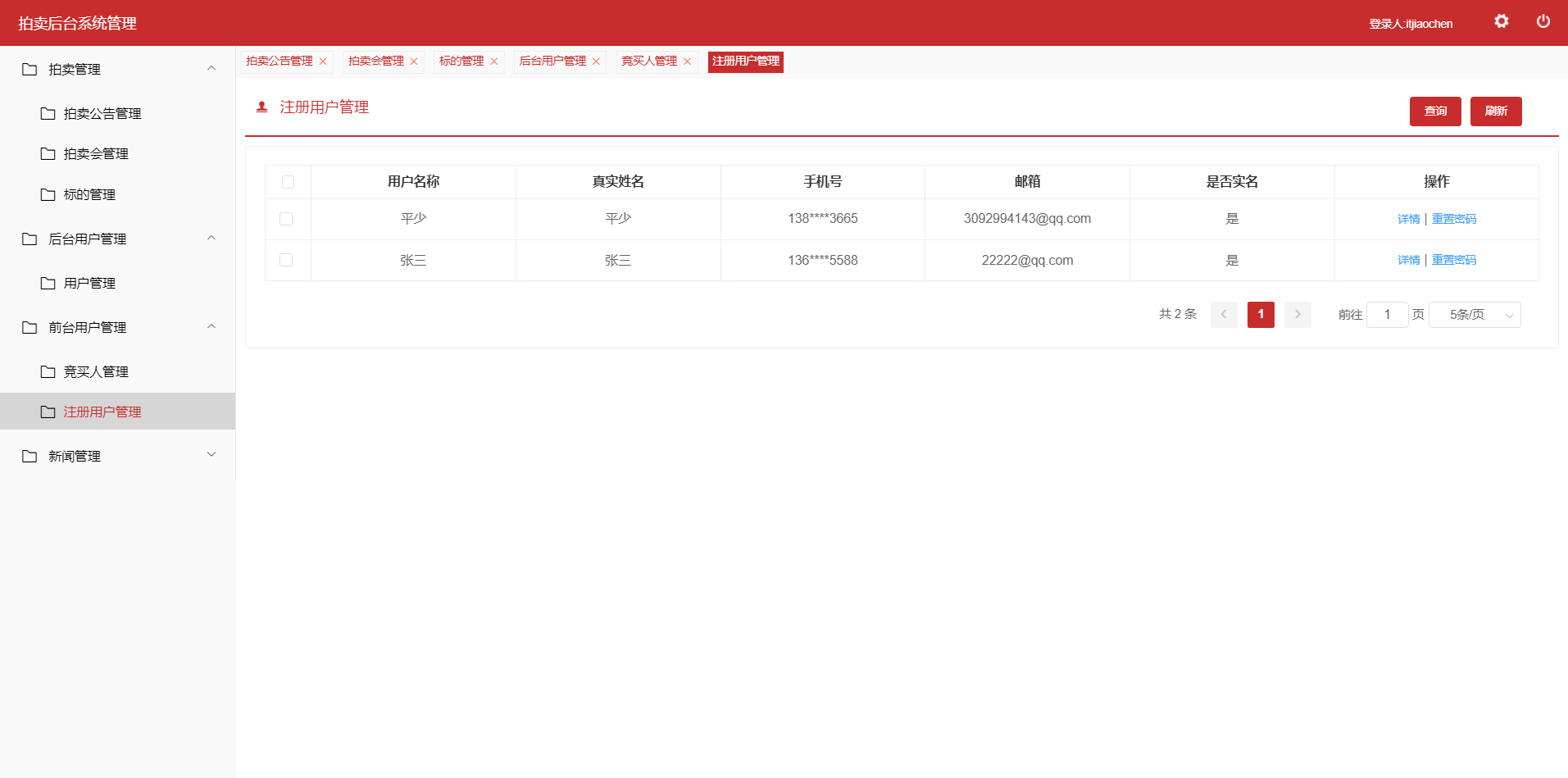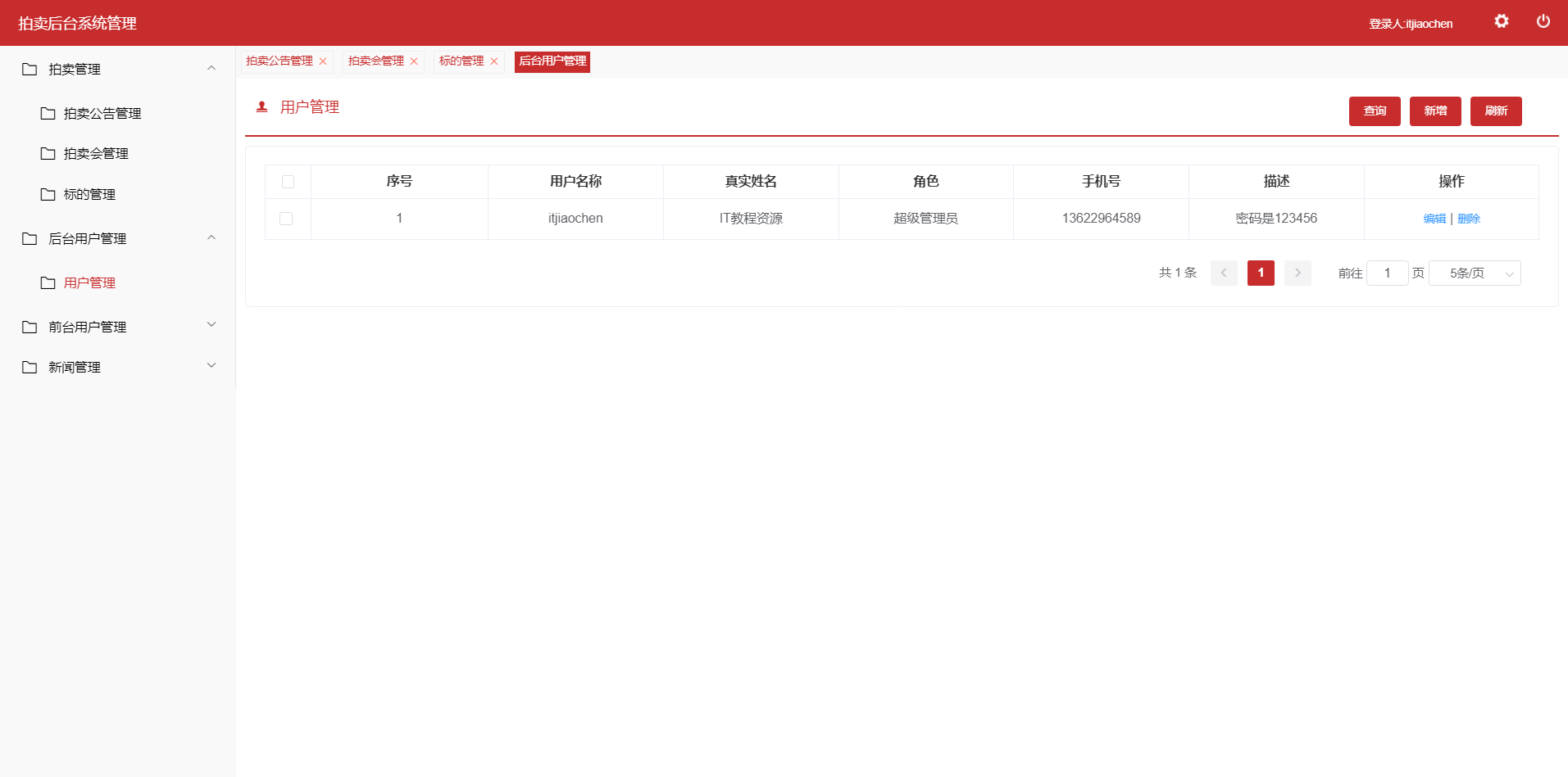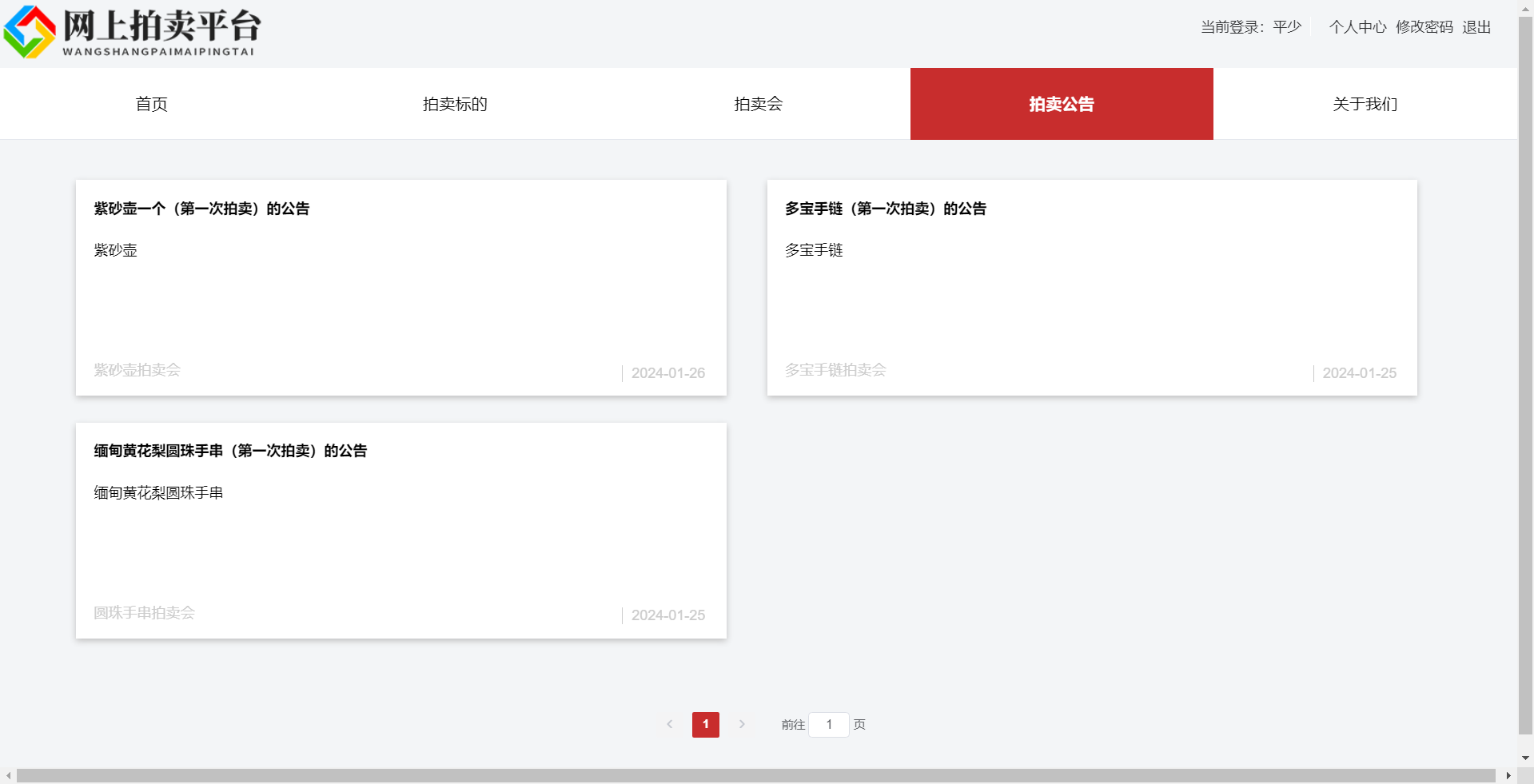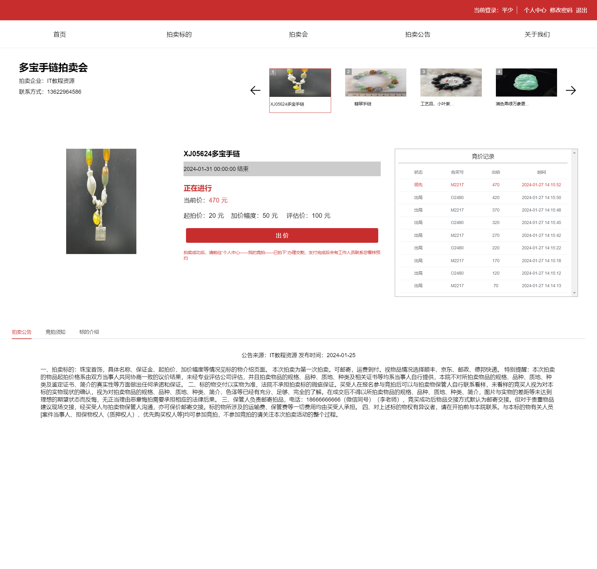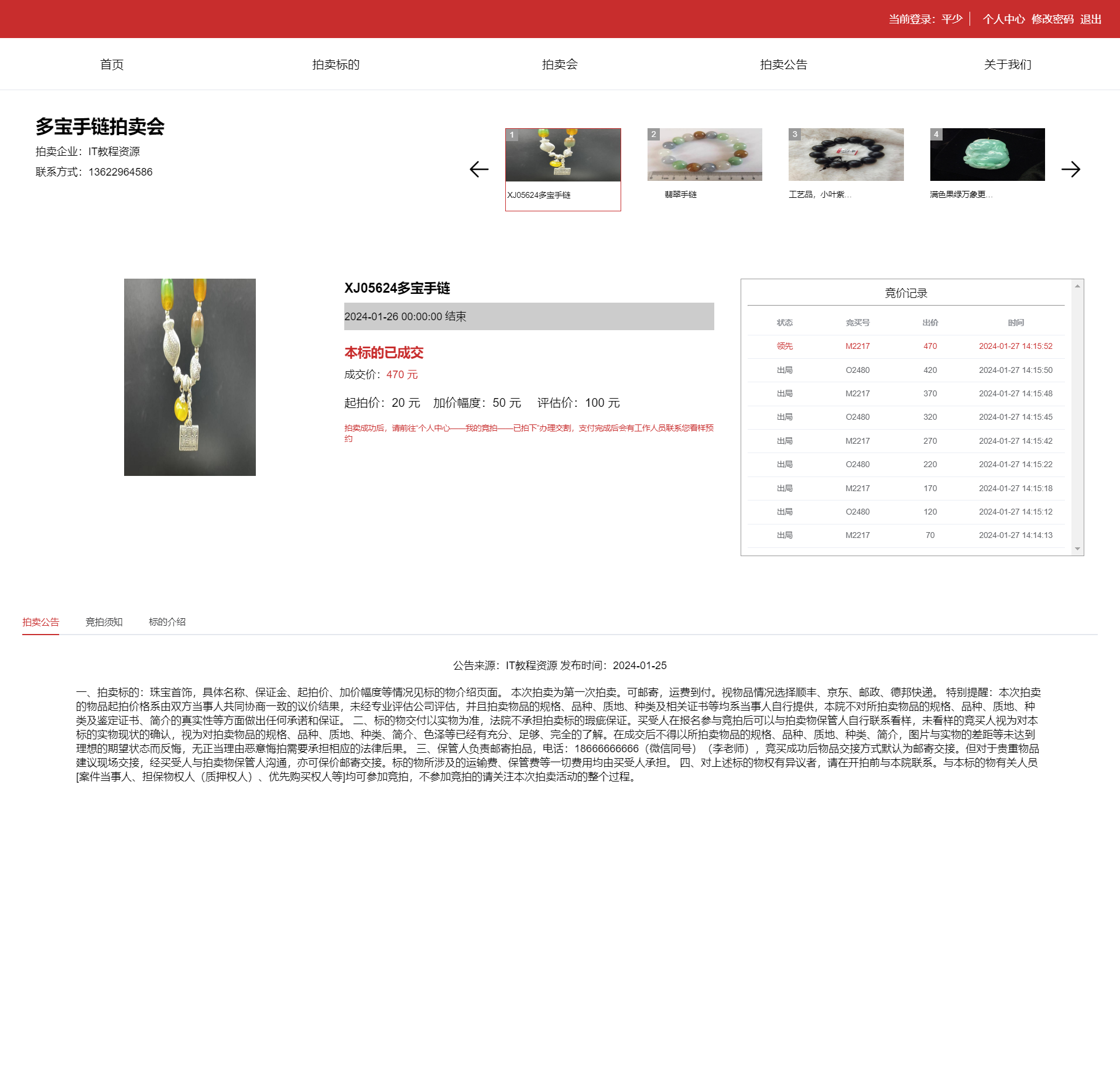 (1).拍卖公告管理:新增、修改、删除、查询、发布、驳回、关联拍卖会
