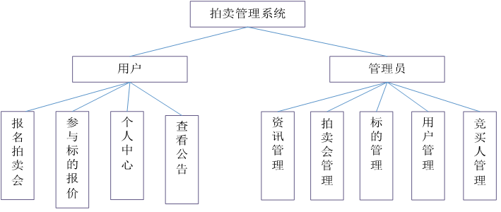 注册用户和登录、首页、新闻咨询、浏览拍卖标的商品、报名、对喜欢标的商品出价竞拍、拍卖标的、拍卖会、拍卖公告、