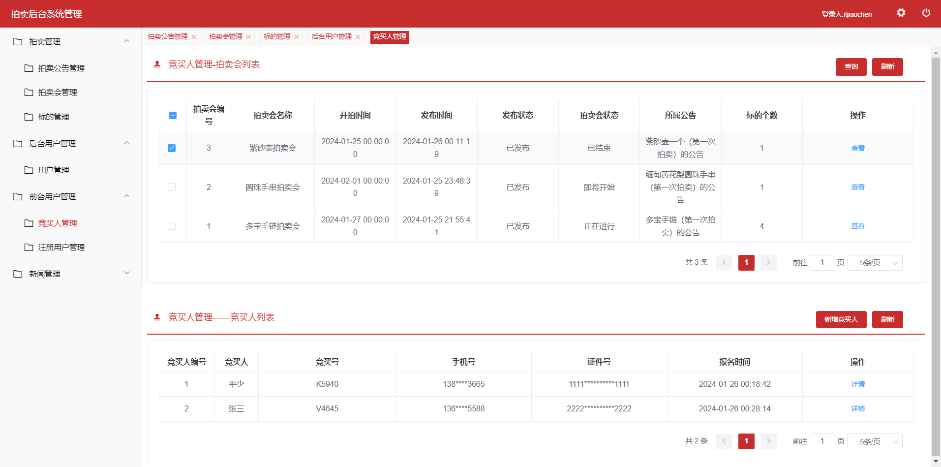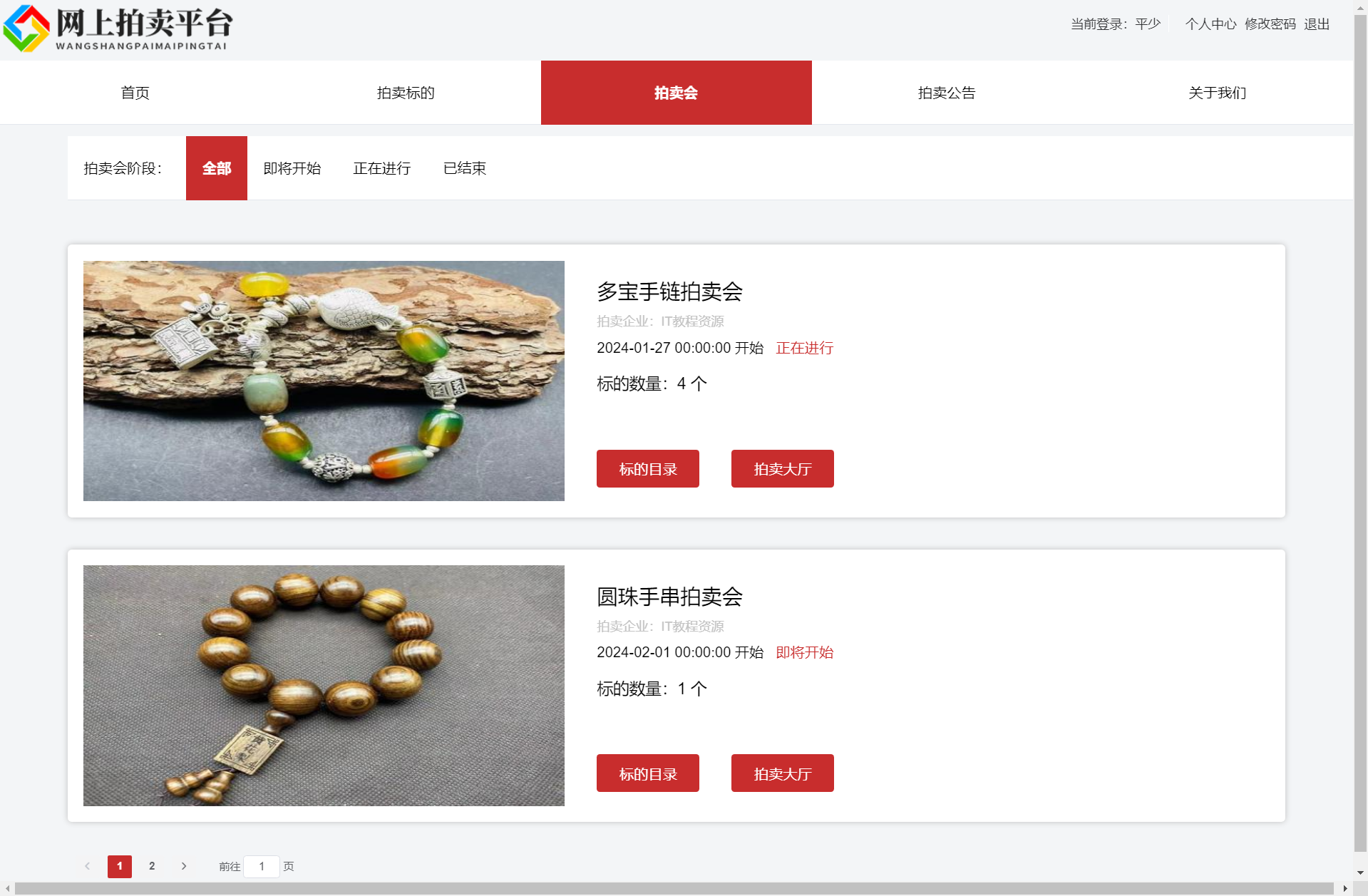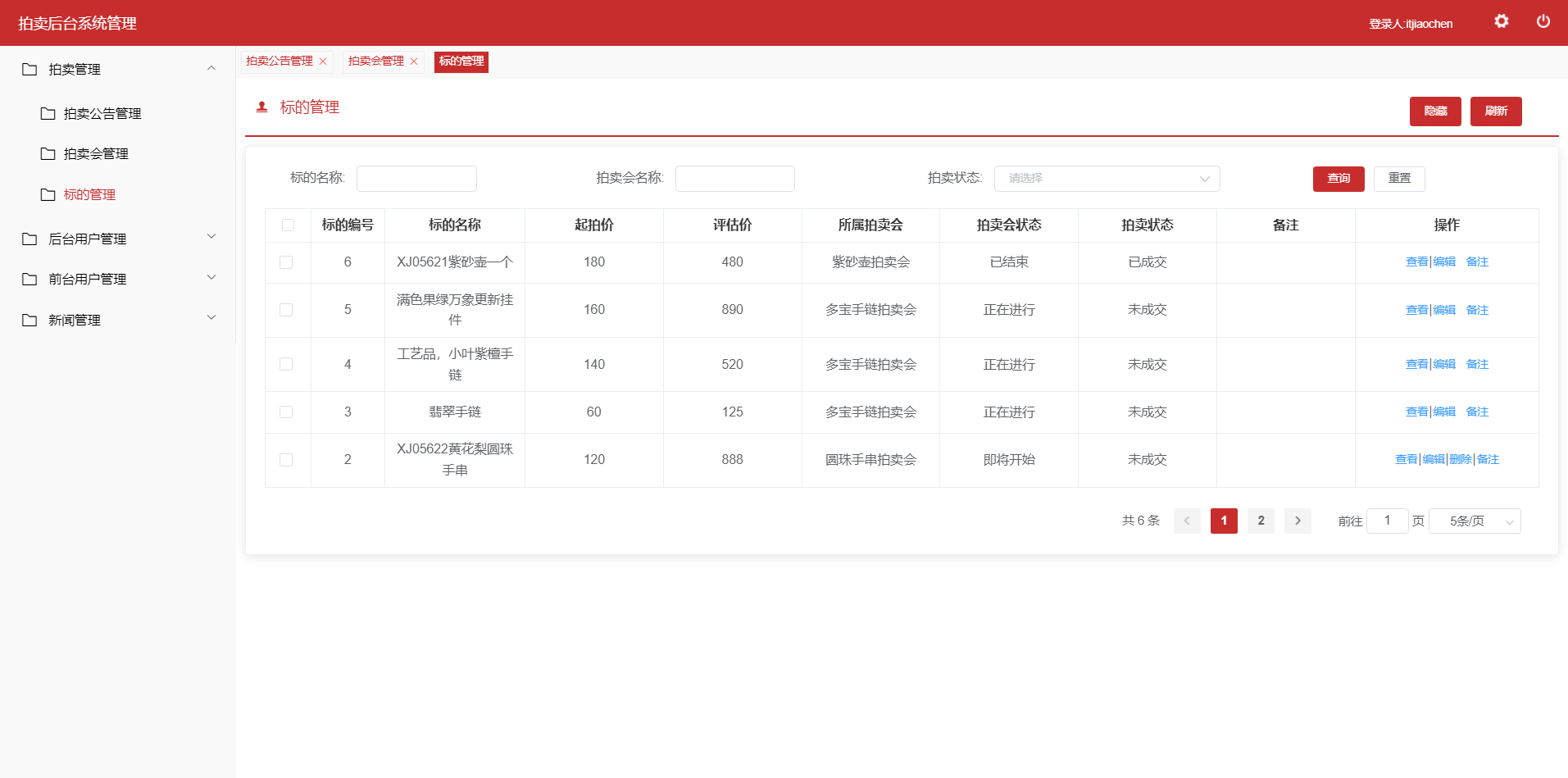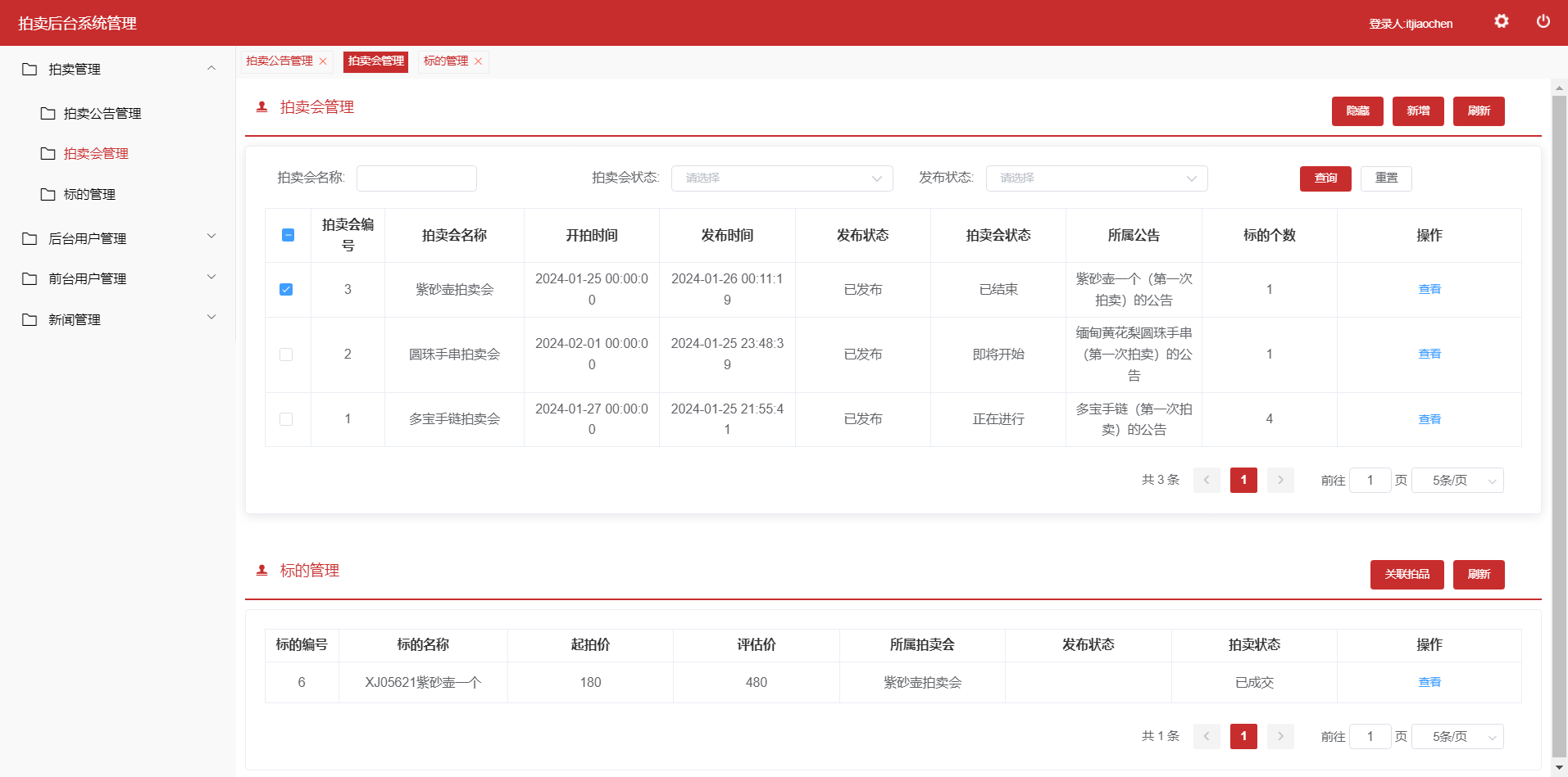 (2).拍卖会管理:新增、修改、删除、查询、关联拍品