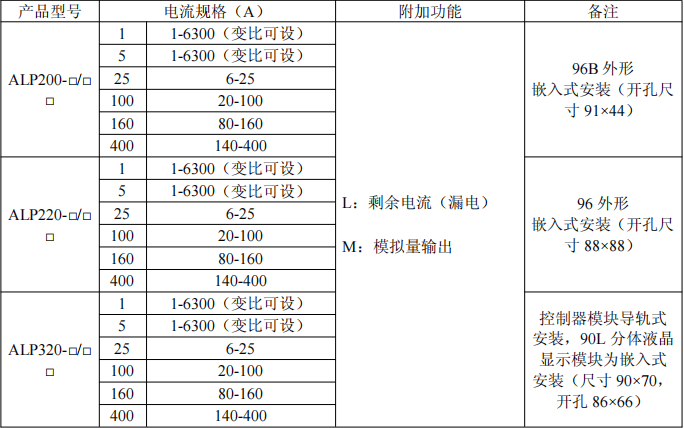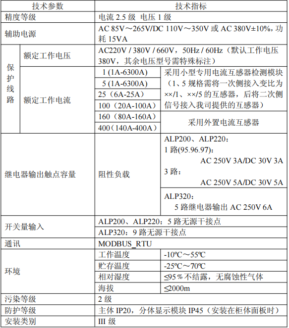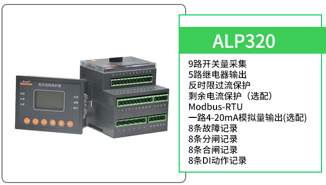 智能型低压线路保护器(以下简称 ALP),适用于额定电压至 AC 660V、额定电流至 AC 400A、额定频率为 50/60Hz 的低压系统。产品体积小,结构紧凑,安装方 便,是低压馈线终端的保护、监测和控制的智能化综合装置。 ALP 系列产品集保护、测量、控制、总线通讯为一体,同时提供了远程自动控制、现场直接控制、 面板指示、信号报警、操作记录、跳闸报警记录及开关量记录等功能。适用于煤矿、石化、冶炼、电 力、船舶、以及民用建筑等域。