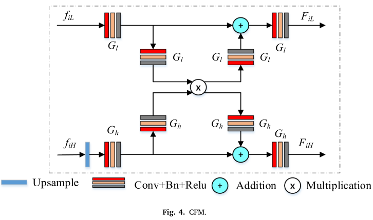 - 对于相邻的三个尺度特征(Fi-1, Fi, Fi+1)