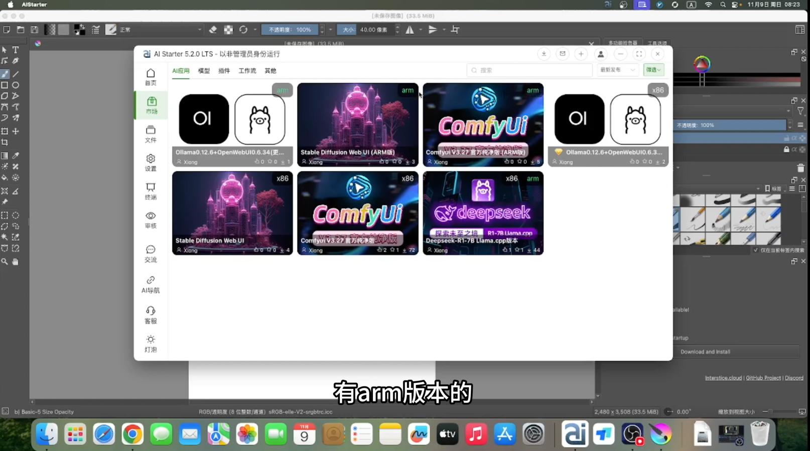 还在为 Mac苹果版Krita AI 安装复杂而发愁?官方ComfyUI对苹果支持差?别担心!今天带你用 AIStarter一键安装 工具,零基础部署 Krita + ComfyUI 全套环境,支持X86和ARM架构(M1/M2/M3),真正实现"一包多用"!