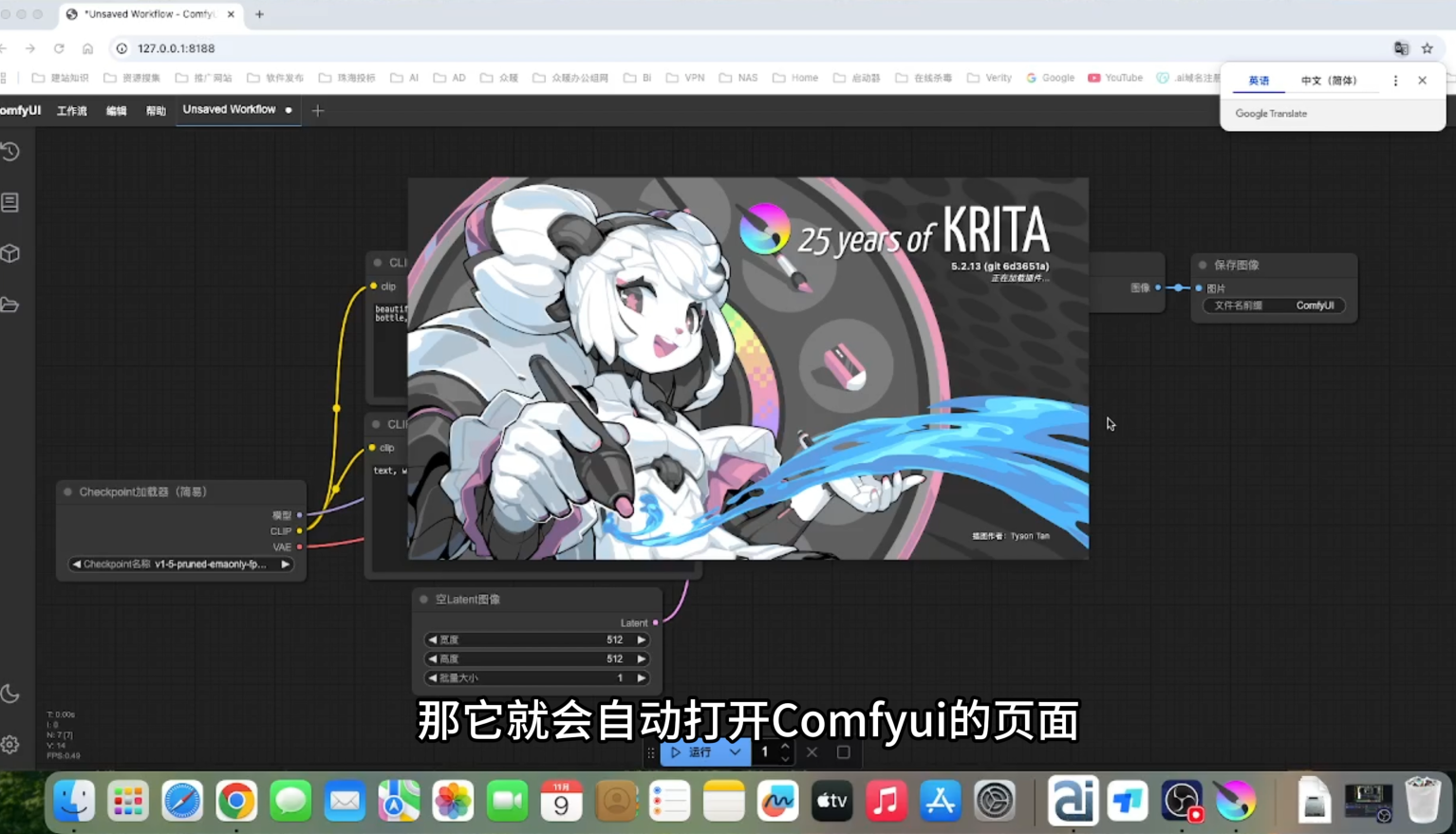 - 首次启动 → 自动打开 ComfyUI页面 + Krita