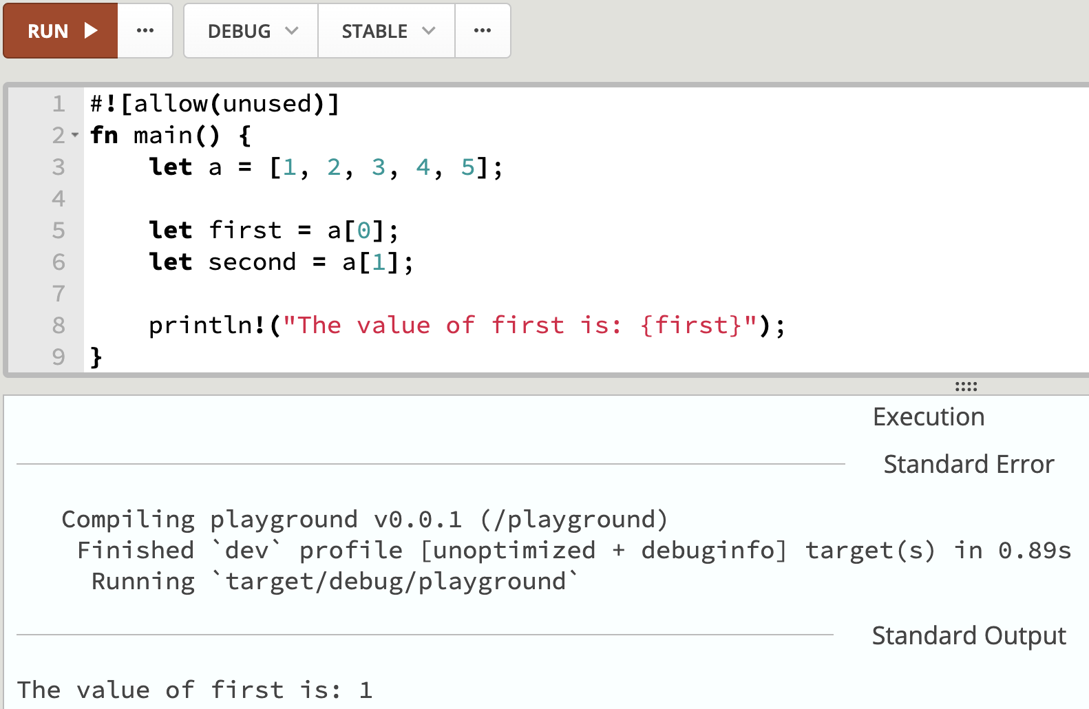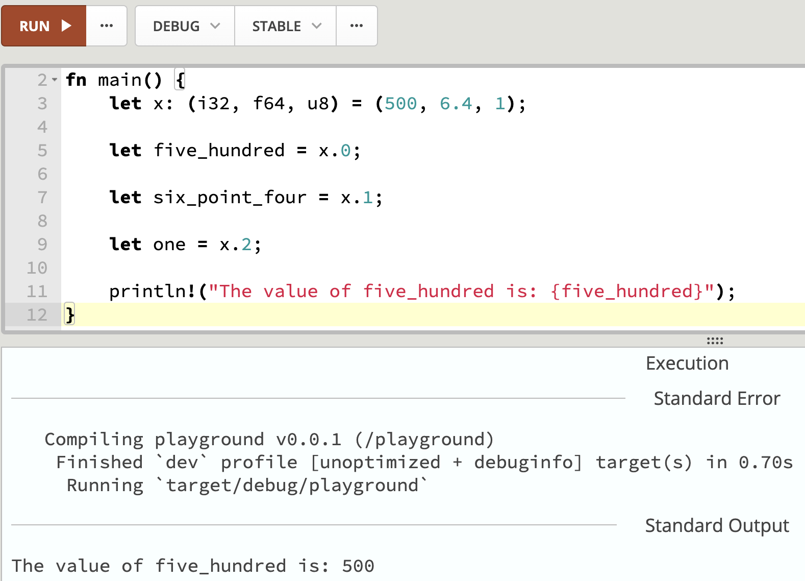 println!("the value of x is {}", x);