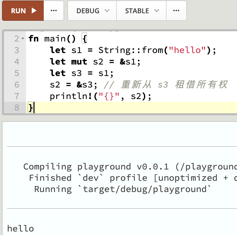 s2 = &s3; // 重新从 s3 租借所有权