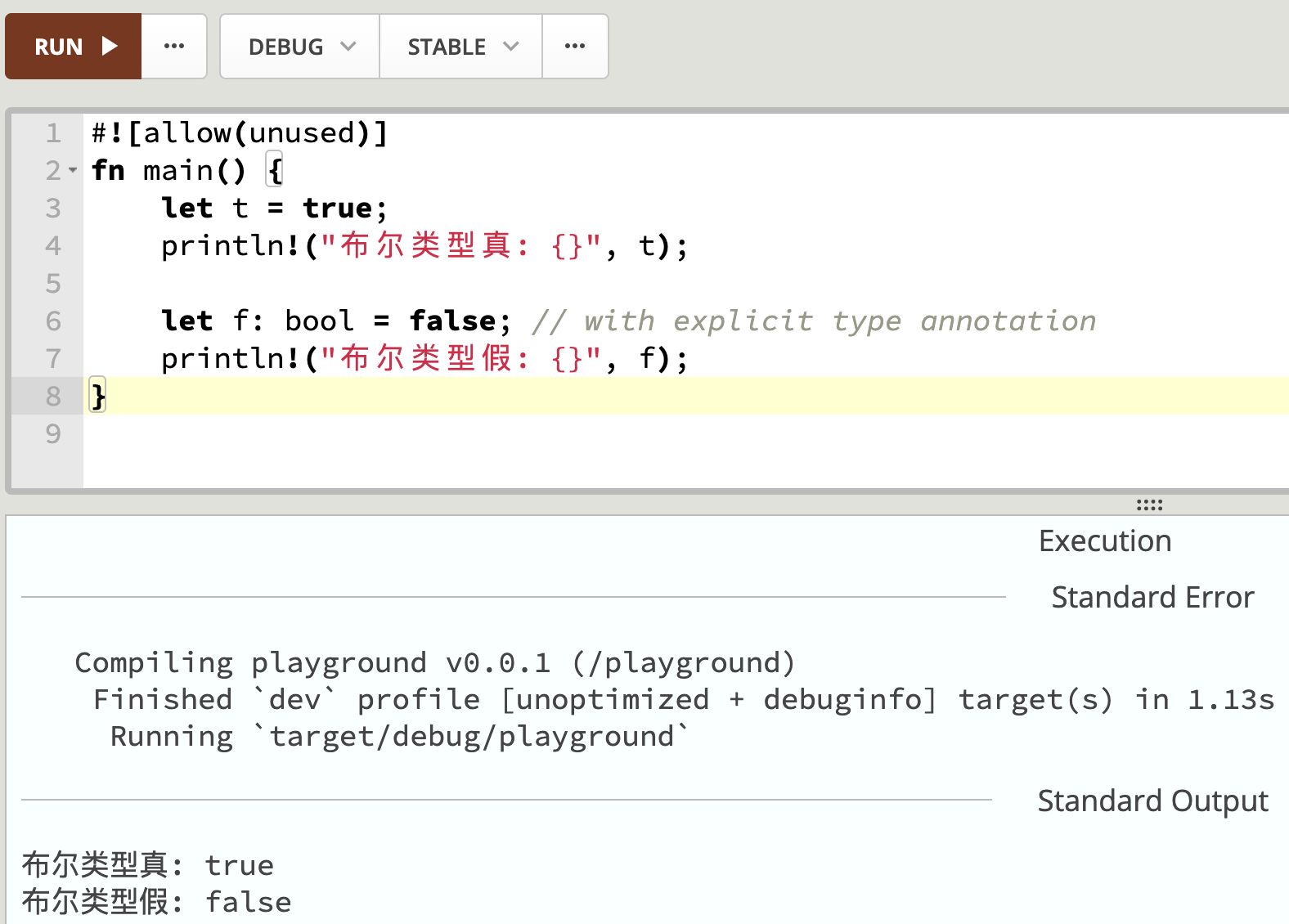- 布尔类型 bool,值为 true 或 false 。