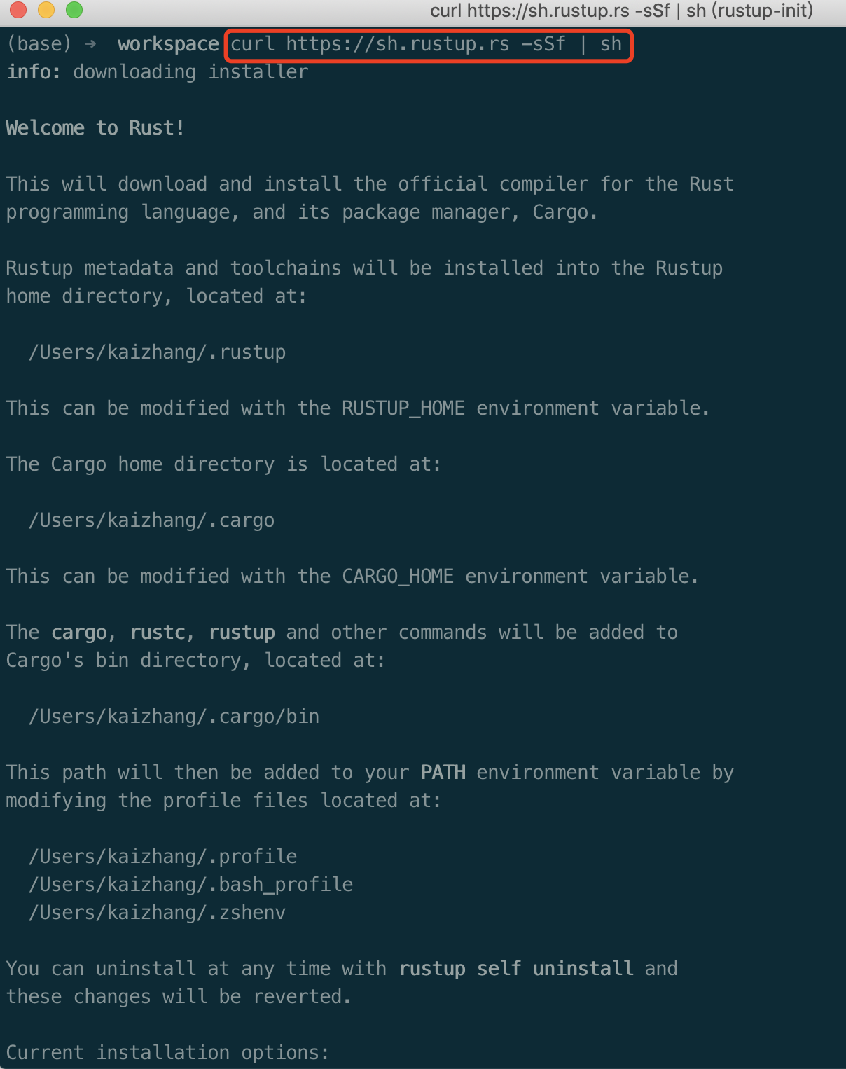 curl https://sh.rustup.rs -sSf | sh