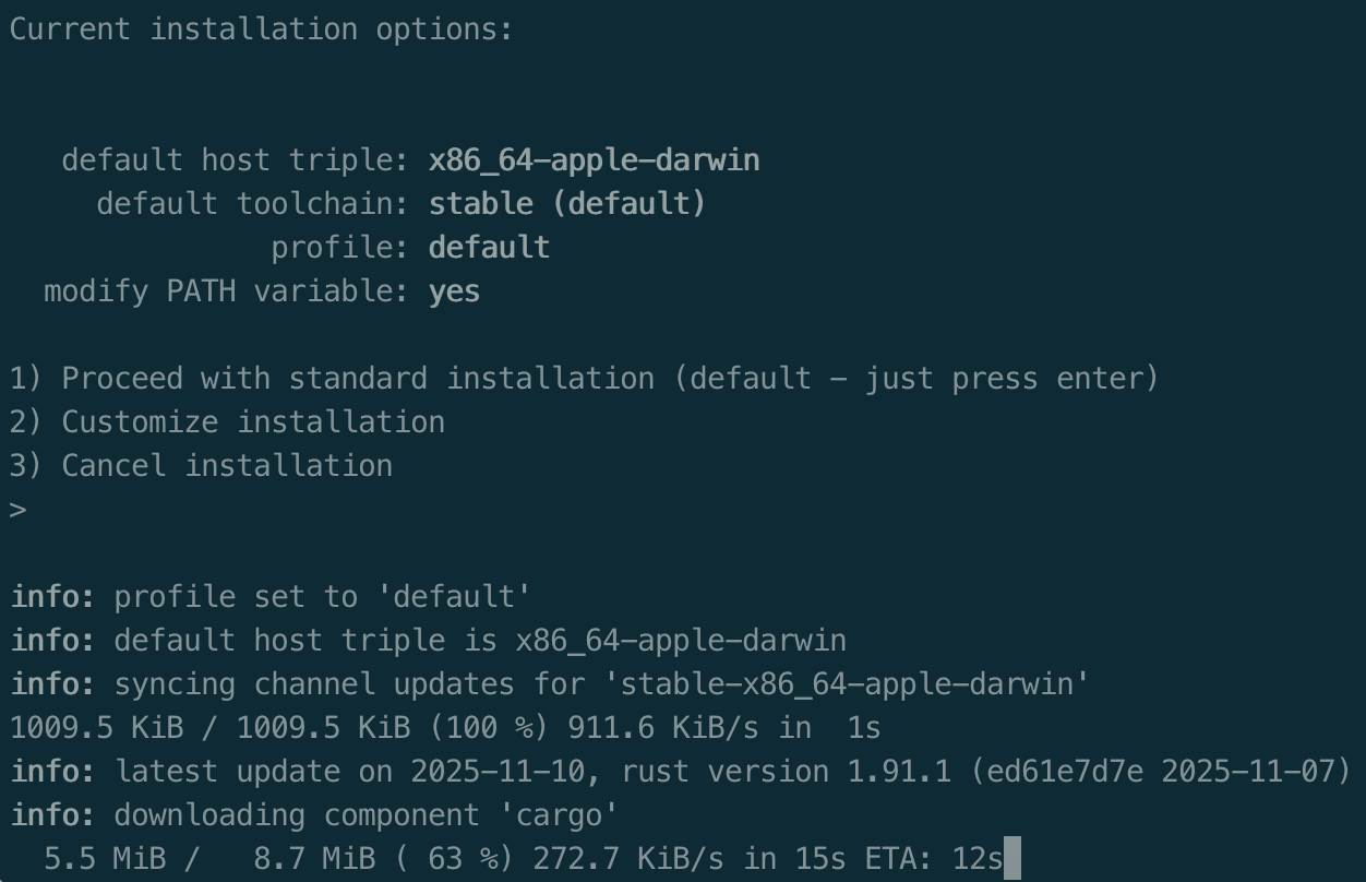 curl --proto '=https' --tlsv1.2 https://sh.rustup.rs -sSf | sh,按照提示选择默认安装选项。 - 安装 C 编译器(可选):如果你的系统中没有安装 C 编译器,某些 Rust 项目在编译时可能会出错。在 Ubuntu 上,可以通过以下命令安装 GCC 编译器: