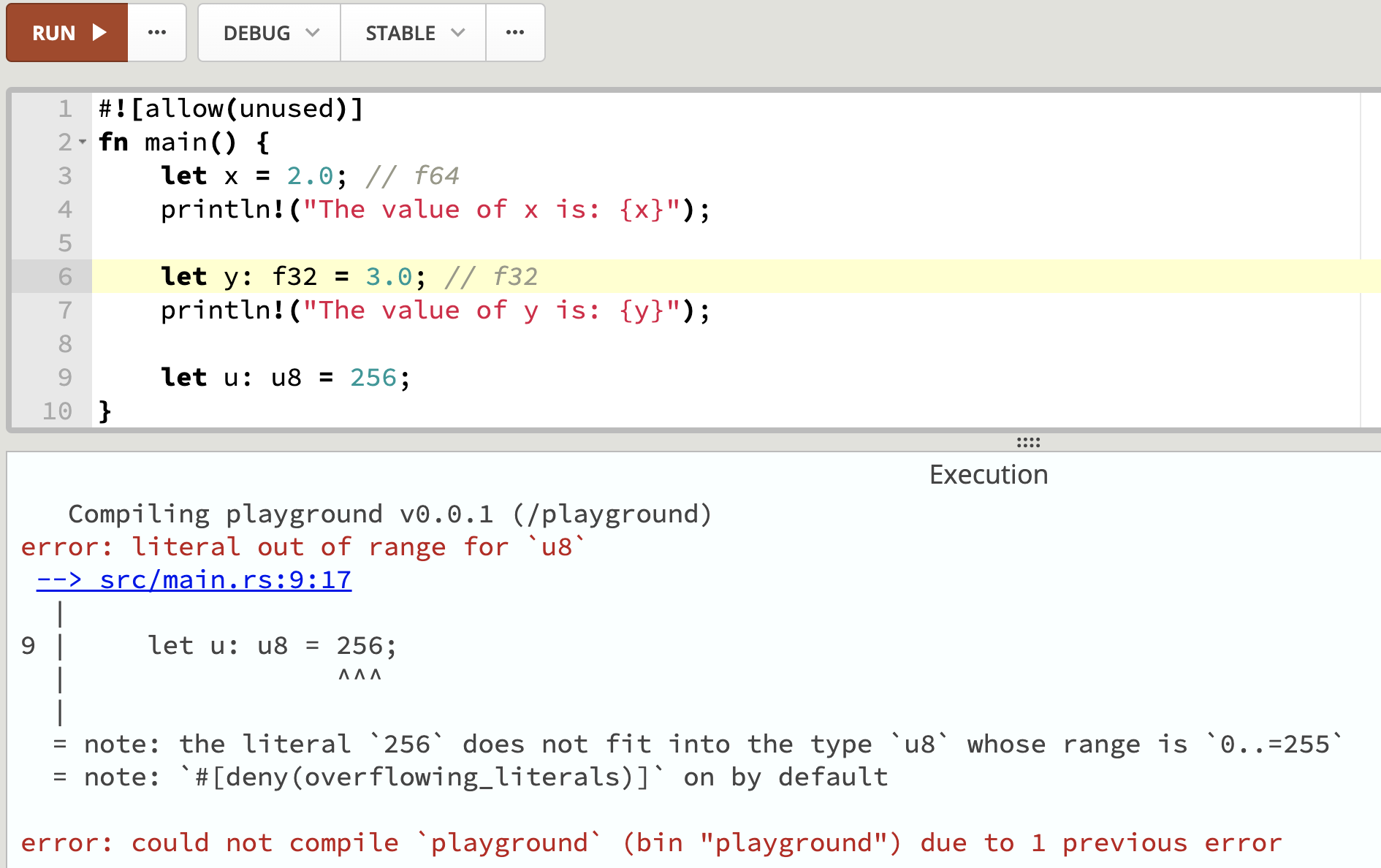 println!("the value of y is {}", y);