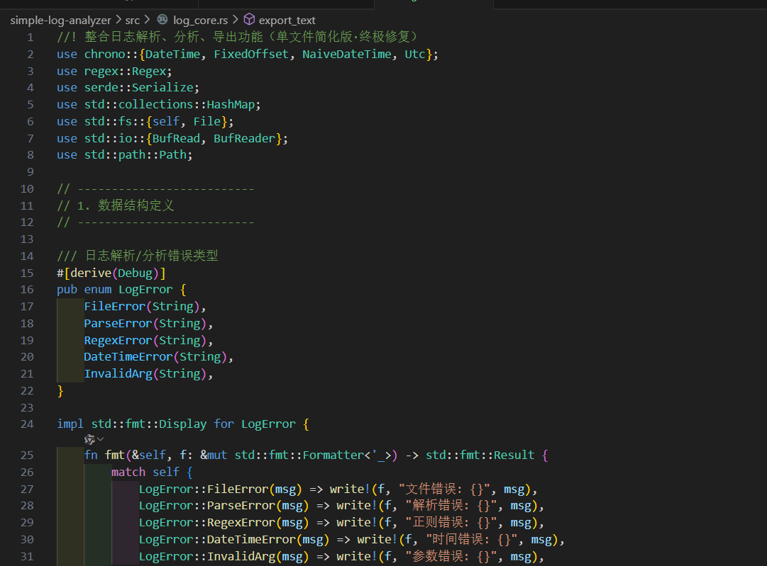 │ └── log_core.rs # 核心逻辑(解析、分析、导出整合)