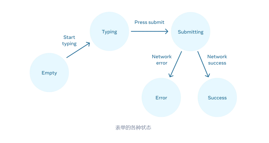 图中的每个圆形代表表单的一个状态 ,箭头代表状态切换的触发条件: