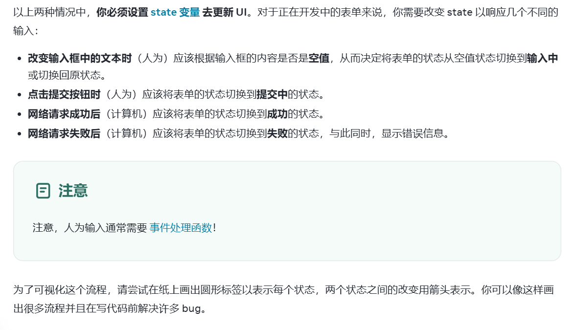 "人为输入"(如打字、点击按钮)需要通过事件处理函数来捕获,并触发状态变化: