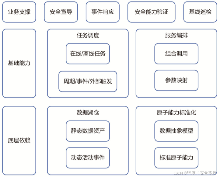 安全自动化的实现并非一蹴而就,其根基在于流程化与数字化 。这意味着安全团队必须首先将安全事件的处理过程,定义为清晰、可执行的标准流程,并能够无缝地访问和操作各类数字资产。在基础能力建设中,除了前文中提到的数字化平台,++任务调度、原子能力标准化、服务编排++等能力也值得关注。