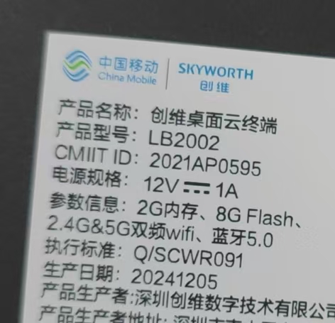 已知创维桌面云终端-创维LB2002,分2款,白盒和黑盒,已知创维LB2002-白盒-是晶晨S905L3A芯片,分2+8G和2+32G两种,LB2002-黑盒-是国科GK6323芯片,2+8G。