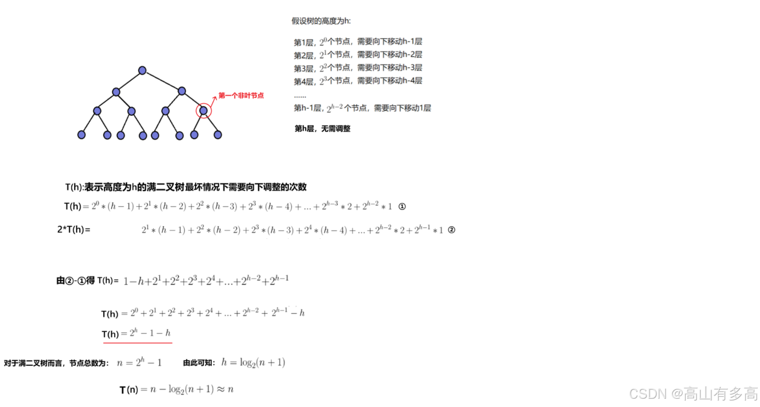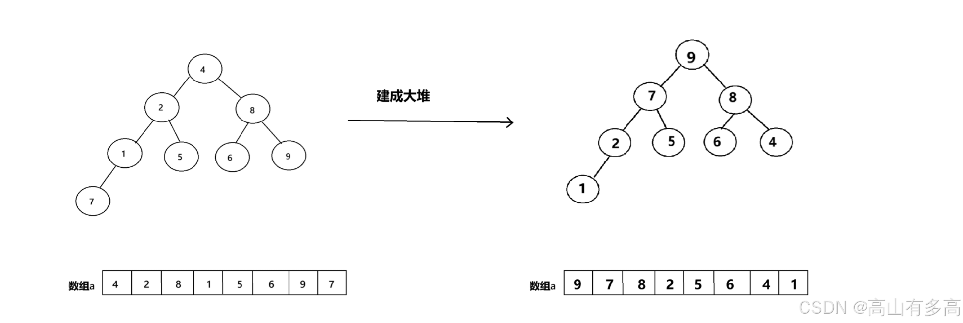 建堆算法是将无序数组转化为符合"堆规则"的完全二叉树(逻辑结构)的核心方法,是堆排序、Top K等所有堆应用的基础,相比于通过数据结构中堆的插入建堆,需要额外O(N)的空间复杂度,基于数组原地实现建堆,仅需要O(1)的空间复杂度。