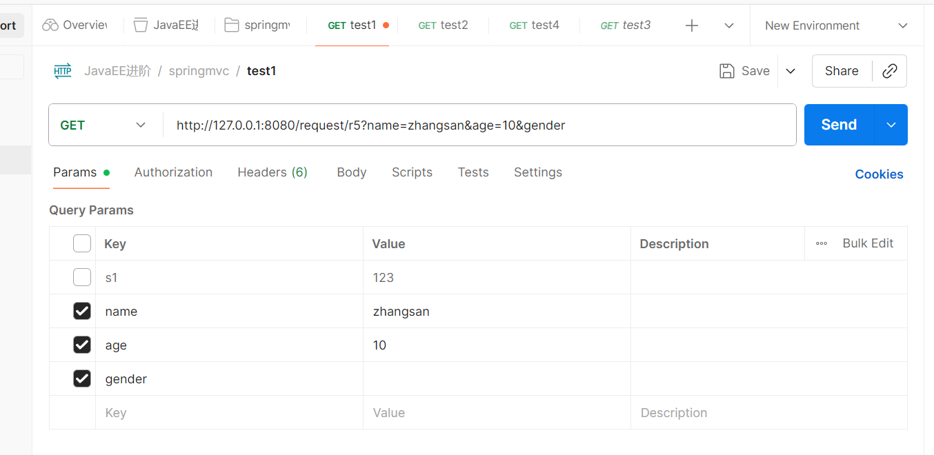 访问不同的路径,就是发送不同的请求,在发送请求时,可能会带一些参数,所以学习Spring的请求,主要是学习如何传递参数到后端以及后端如何接收