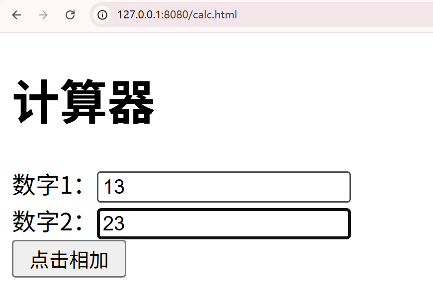 需求: 输入两个整数,点击"点击相加"按钮,显示计算结果