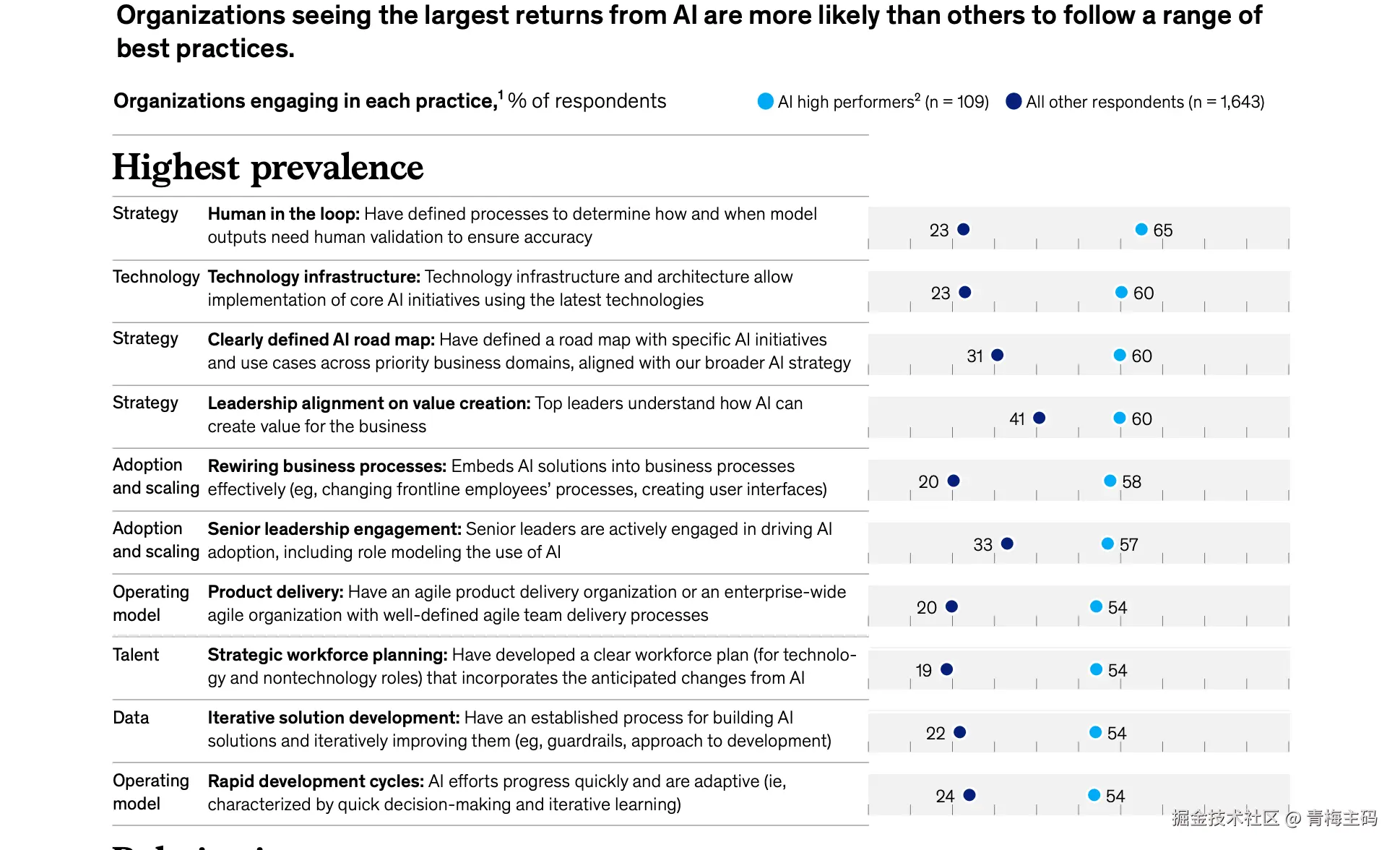 报告把公司分成了**高绩效者(AI High Performers)**和普通玩家,差距非常明显:
