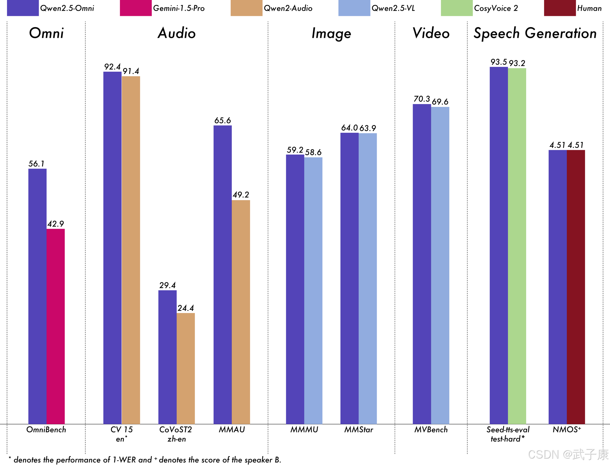 团队称其在该项评测中获得 SOTA(state-of-the-art) 成绩。可以说,在跨模态理解和跨模态推理的全面性上,Qwen2.5-Omni当前几乎没有敌手。