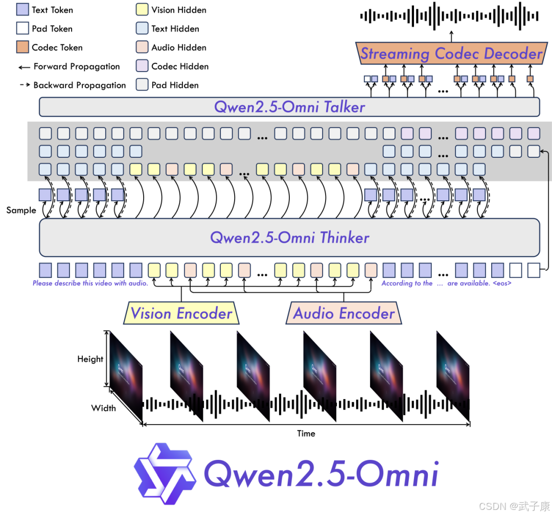 不过在Omni-7B中,32k上下文已经能满足绝大多数多模态应用场景。输出方面,一次对话生成的token数量通常限制在最多8192个token左右,以避免响应过长(当然也可根据需要调整)。值得注意的是,由于Omni能产生语音输出,而语音是通过连续多个离散token生成的,因此对Talker来说,每秒语音对应一定数量的token(取决于音频码率)。