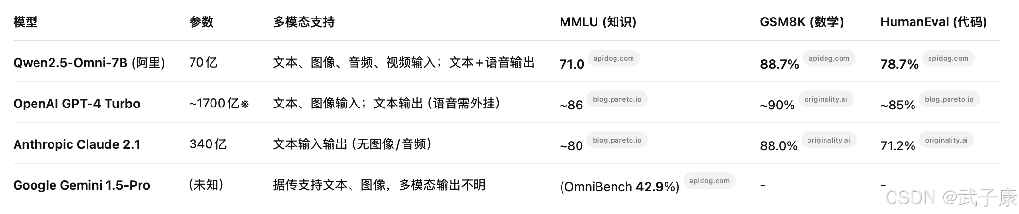 总之,在推理效率上,Qwen2.5-Omni以"小而快"著称,能以较低算力提供媲美部分大模型的功能。