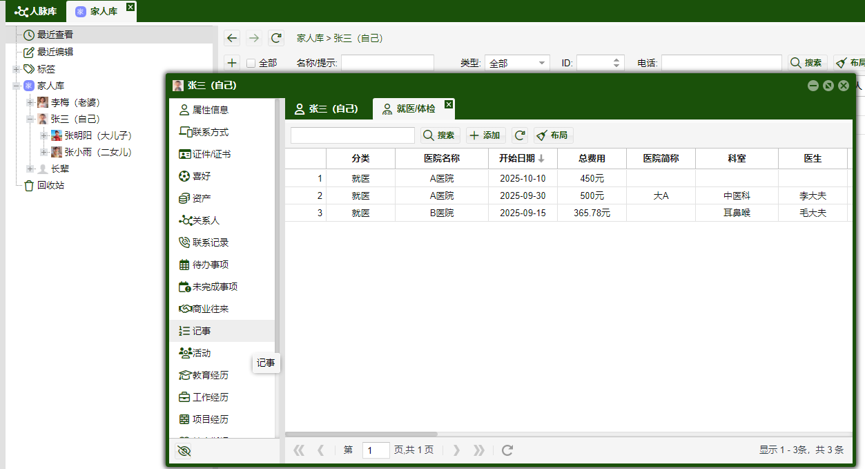 这样在记录一些重要的关系人、家人等各项信息的时候,会比较便捷。适合的场景包括:族谱、关系人、客户库等。