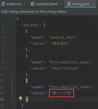 接下来跳转到 string.json 文件中,我们修改 value 的值,如下图所示: