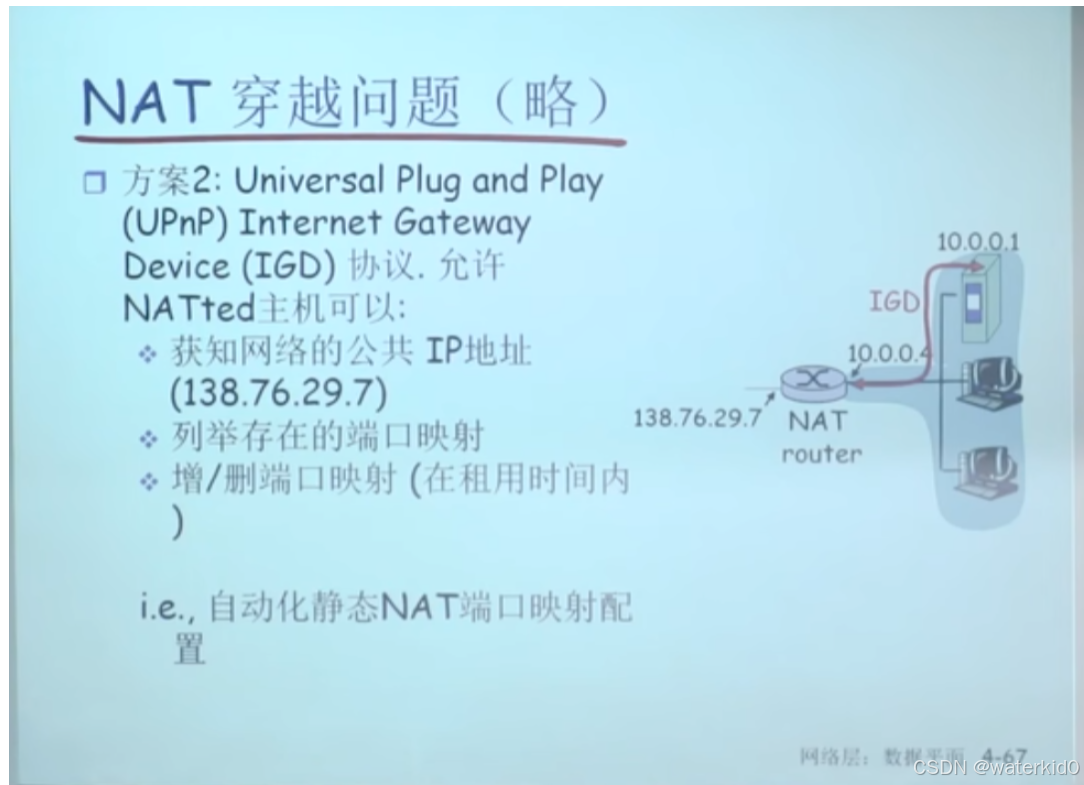 - UPnP协议,,这个协议允许内网这些设备去查询相应的表项,去增加,或者删除