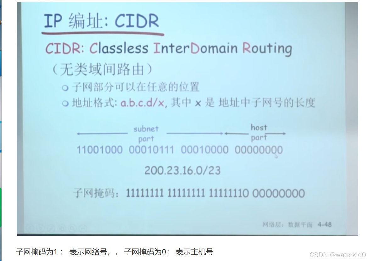 子网掩码: 子网掩码由 0 和 1 组成,,, ip的前部分是网络号,,ip的后部分是主机号,,子网掩码如果为1的位数,就表示这个ip地址的网络号,为0就是主机