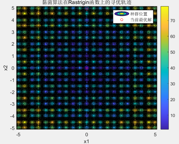 以下是完整的 MATLAB 脚本,实现黏菌算法对经典测试函数(Rastrigin 函数,具有大量局部最优解)的优化过程,并可视化算法的探索 - 收敛过程。
