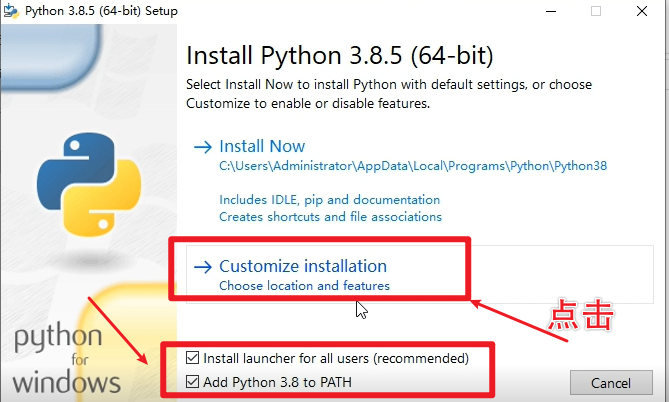 - 勾选「Add Python 3.8 to PATH」(这是自动配置环境变量的关键,新手务必勾选,否则需手动配置)。