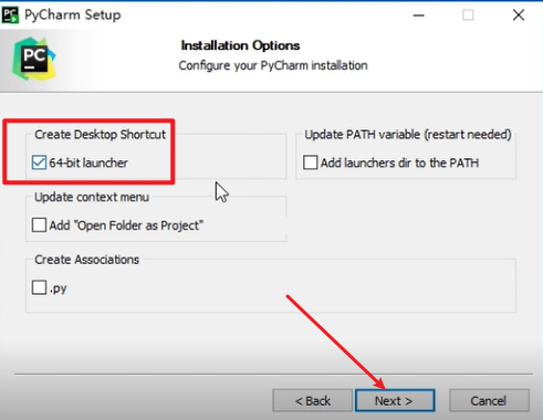 - Create Desktop Shortcut(创建桌面快捷方式,选择 64-bit)