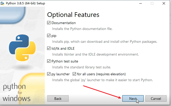 pip、IDLE等必要组件),点击「Next」。