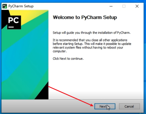 这里之前双击下载好的pycharm-community-2020.1.1.exe(专业版)有条件建议下载专业版更好一点,弹出安装界面,点击「Next」。