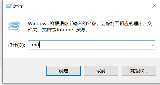 Win + R,输入cmd,回车打开命令提示符。