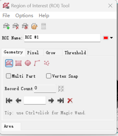 - 打开【ROI Tool】(快捷键 R),选择【Polygon ROI】(多边形 ROI),沿校准板边缘绘制 ROI(仅包含校准板中心均匀区域,避开边缘 1~2 像素);