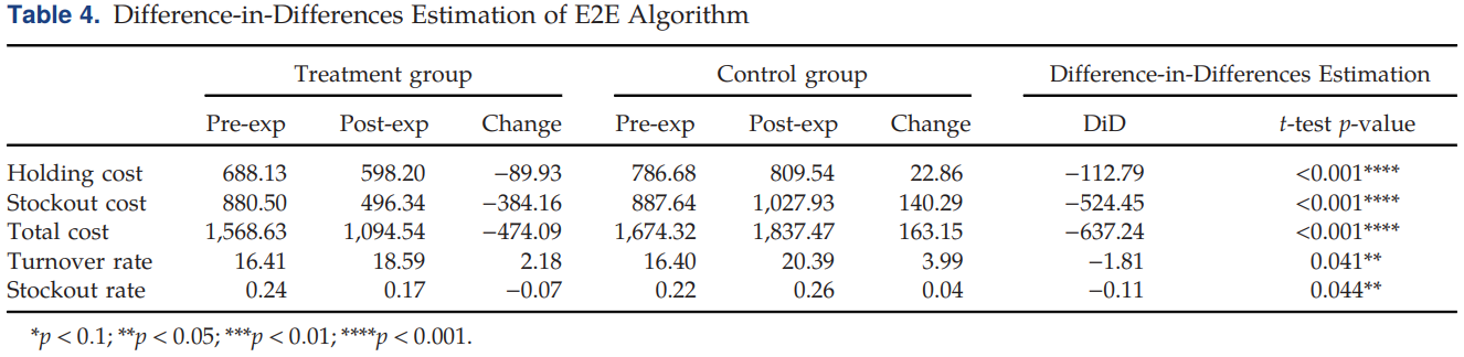 将 "实验组的变化" 减去 "对照组的变化" 。这样,共同的外部影响就被抵消了,最终得出纯粹由E2E算法所带来的因果效应。
